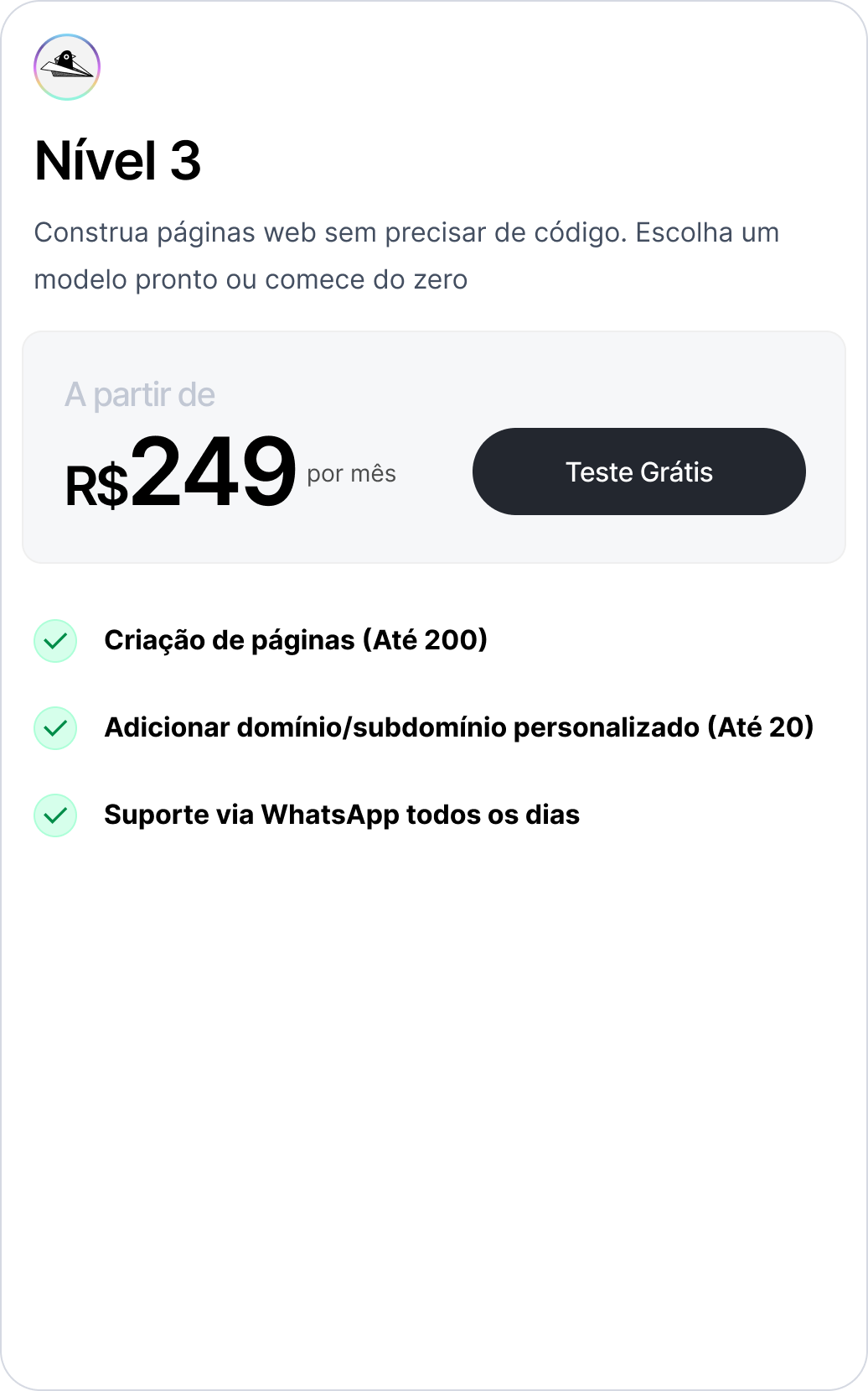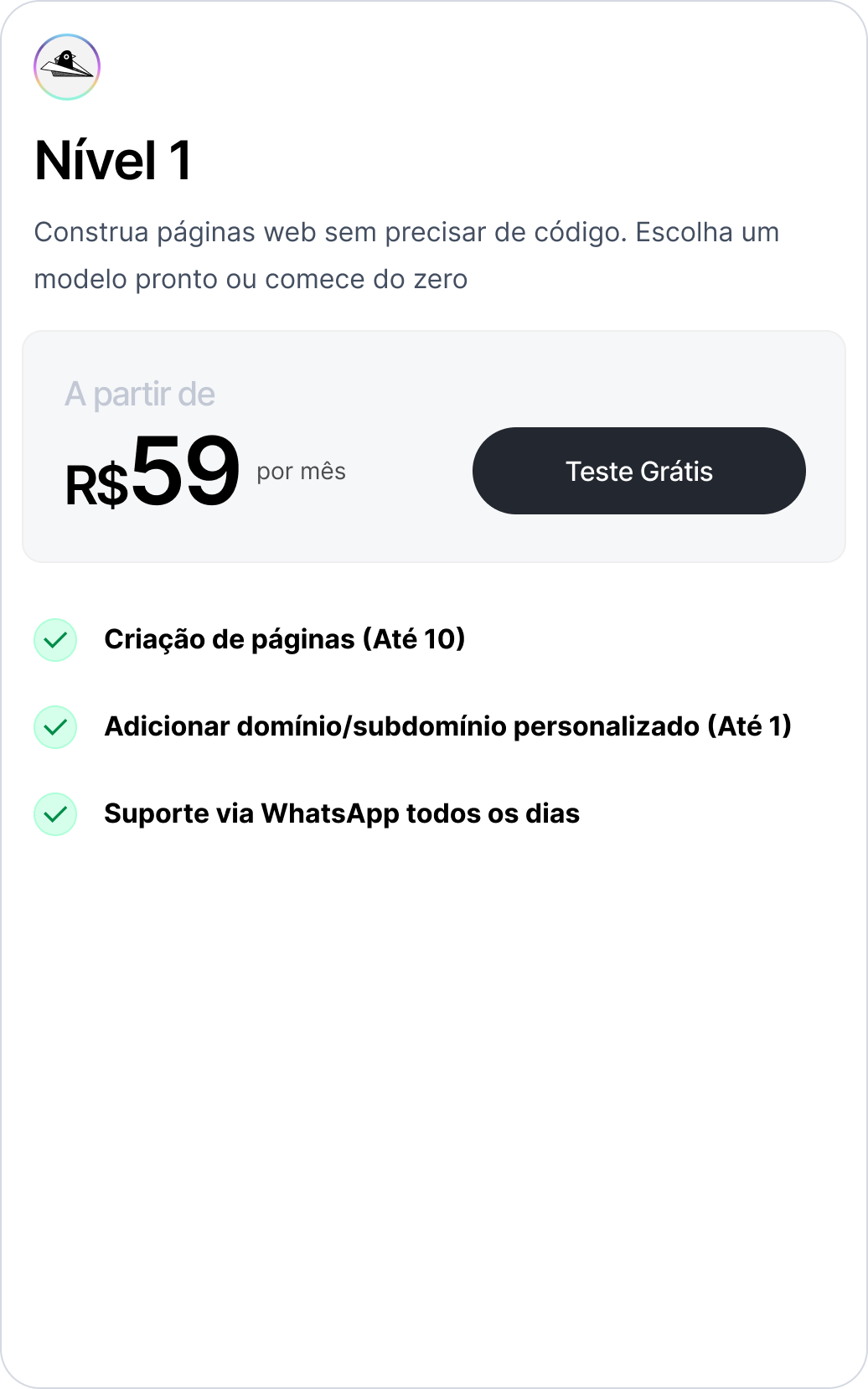 Aplicativo que permite criar landing pages em minutos, sem código, com foco em conversão.