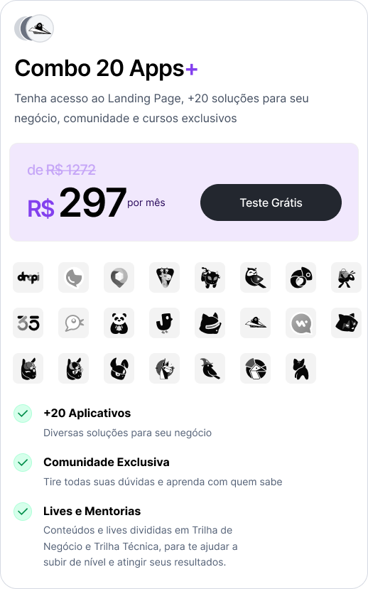 Compatível com Nuvemshop, Shopify, Yampi, Tray, Bagy e Cartpanda.
